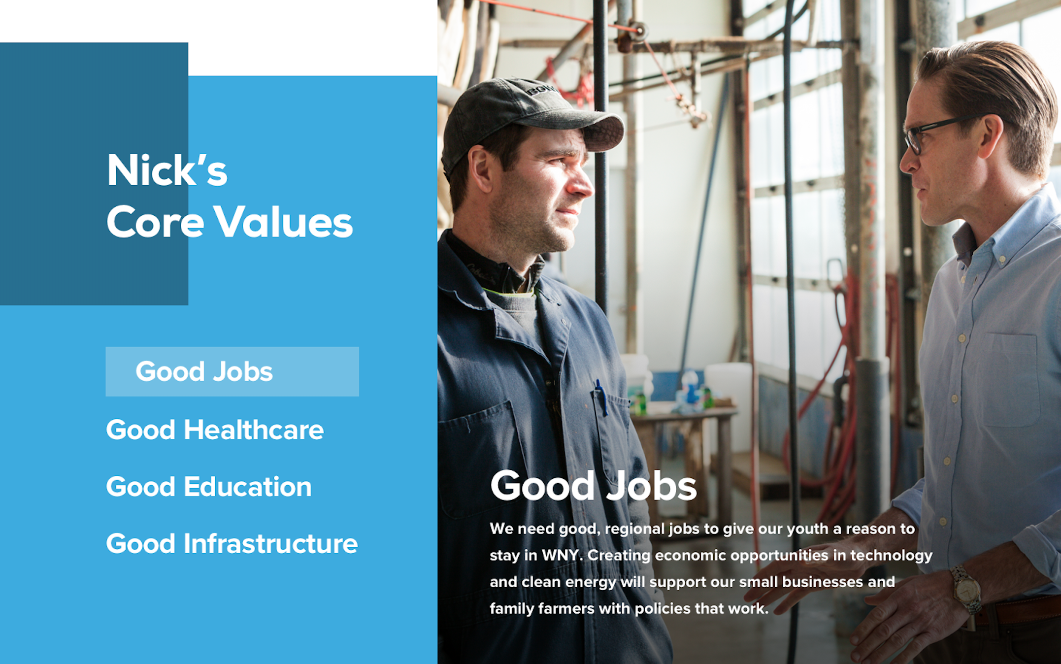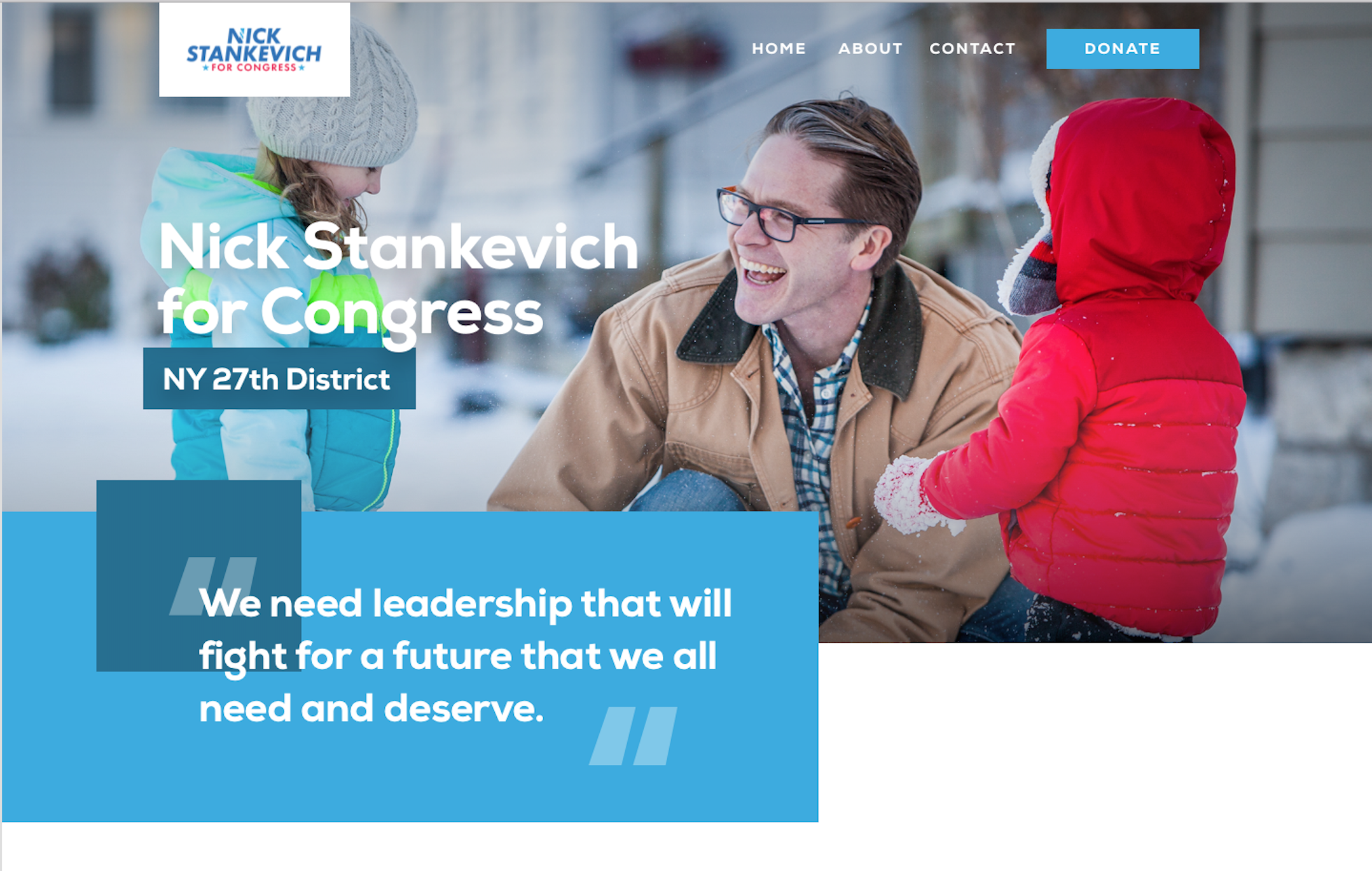 Flipping a Red district Blue is always a goal. Nick mounted an upstart campaign for NY 27th Congressional district and Purple State was there to help. We developed his fresh branding with photography, logo and web design. Our team built-out his Facebook and Instagram profiles, growing it by over 1000% with our digital strategies.